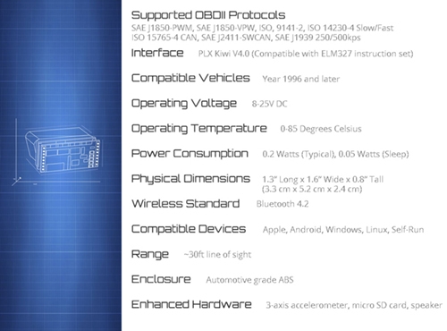 Das Modell Kiwi 4 ist mehr als ein vielseitiges OBD-Scan-Tool. Es umfasst alle Funktionen und die App-Kompatibilität des Kiwi 3 und bietet folgende neuartige Funktionen. Mit der für Apple und Android verfügbaren "Kiwi OBD"-App inklusive AcceleratedPolling™ is das Modell achtmal schneller als der nächste Mitbewerber. Die integrierte Micro-SD-Karte ermöglicht die Datenerfassung und den Import in jede beliebige Tabellenkalkulation. Einen integrierten Lautsprecher mit 4 akustischen Warnhinweisen und smarten Auslösern. Der eingebaute Beschleunigungsmesser ist für Wettkämpfe geeignet. Ihr Smartphone muss nicht mehr dauerhaft mit dem Fahrzeug verbunden sein, um Längengrade-/Breitengrad -Koordinaten zu erfassen. Der Stromverbrauch ist sehr gering (0,2 W im aktiven Zustand / 0,05 W im Ruhezustand), sodass Sie das Gerät dauerhaft im Fahrzeug installiert lassen können. Die *8GB Micro-SD-Karte und der SD-Kartenadapter sind jetzt im Lieferumfang enthalten.